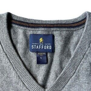 Stafford, gray V-neck, regular fit, Viscose polyester nylon wool and cashmere 21" pit to pit, 26.5" long
