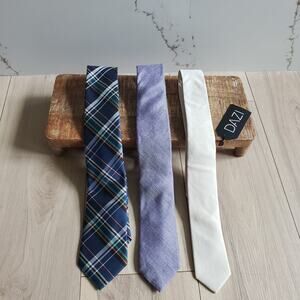 Lot of 3 Mens Ties Dazi Linen Skinny Ryan Seacrest Silk Blend Stafford Plaid