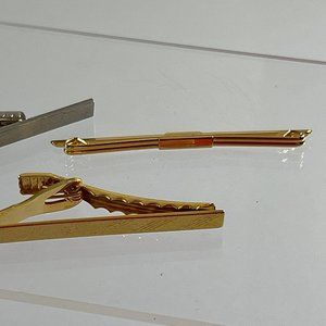 Lot of 3 Metal Tie Clips Bars Slides Silver Tone Gold Tone Unbranded