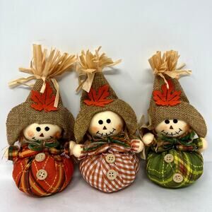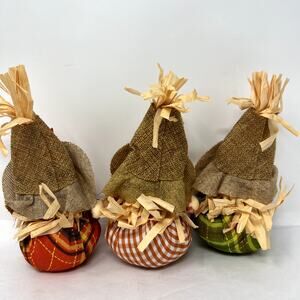 Lot of 3 Mini Scarecrow Table Figures Thanksgiving Halloween Fall Autumn Decor