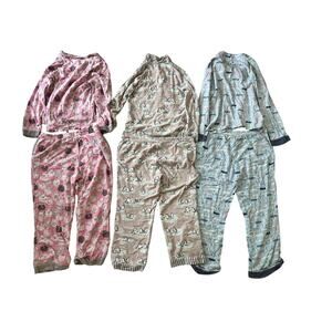 Lot of 3 Munki Munki Animal Print Pajama Sets Pink/Blue/Gray Womens Sz Large