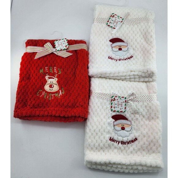 Lot of 3 NEW Zak & Zoey Christmas Baby Blankets Santa Reindeer 30 x 40.