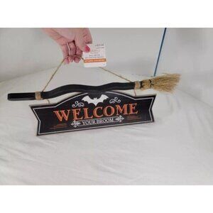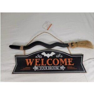 Lot of 3 New Halloween Decor Hanging Witch Broom Sign Flying Monkeys Pumpkin LED
