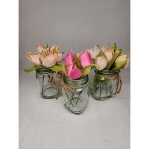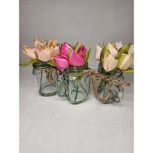 Lot of 3 - Old East Main - Clear Glass Mason Jar Style Mug w/Artificial Tulips