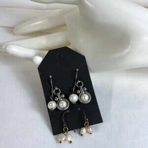 Lot of 3 Pairs Pearl Dangle Earrings – Vintage Costume Jewelry
