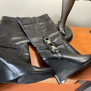 2 Calvin Klein Black Top Grain Leather Wedge Boots
