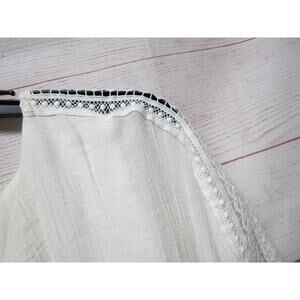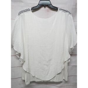 This is a lot of 3 plus size 3X tops. The first is a white cape-style top by Alyx. It has an attached tank underneath that fits snugly and is very stretchy. The outer layer is a white, gauzy fabric that drapes loosely over (no real sleeve but there is the appearance of a sleeve). The chest on the tank is 46" (without stretching). Next is a green ombre snakeskin print top by NY Collection. This one has an asymmetrical hem, so it's much longer on the sides. Sleeves can be worn long or buttoned up. Chest is about 54". Last is a floral blouse by Boutique (JC Penney I think) with shades of black, yellow, and orange. It has 3/4 sleeves and chest is about 56". Thanks for looking!