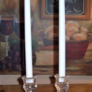 $5 for all 3 sets of candle holders and LED candles. These Luminessence™ candleholders come complete with 3 sets of flickering, 10¼" tall, LED Taper Candles uses AAA batteries (not included). Battery-operated LED candles are a safe way to provide illumination in emergency situations plus add a touch of ambiance without the dangers of a flame. Flickering LED flame lasts up to 240 hours and their base makes them perfect for placing into the crystal clear candleholders included in this offer. They are also great for dinners, holidays, weddings, candlelight vigils, tailgate parties, and any occasion calling for safe mood lighting.