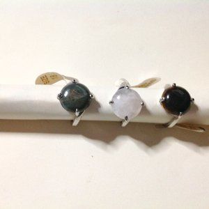 Here is a lot of three vintage silver tone electroplated natural gemstone rings size 8.