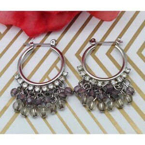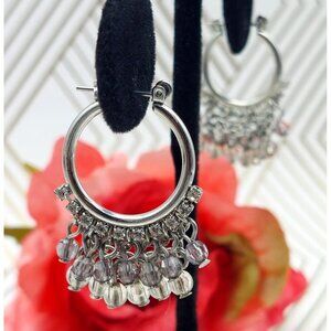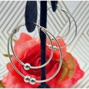 Lot of 3 Silver Tone Hoop Earrings Dangle Crystal Ball Bead Open Works Pierced