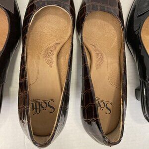 Lot of 3 Sofft Heels Shoes Womens 7 Black Brown Patent Slingback Leather Pumps