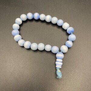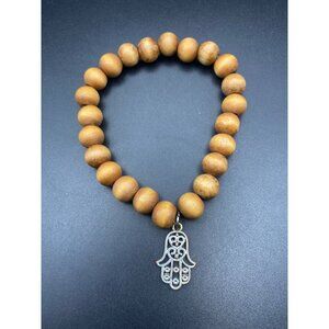 Lot of 3 Spiritual Beaded Bracelets Blue Jadeite Cats Eye Glass Wood Hamsa