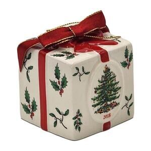 This product is a set of 3 Spode Christmas Tree Gift Box ornaments from the 2018 collection. Made of porcelain and featuring a square shape, these multicolored ornaments are part of the Christmas Tree collection by Spode. The ornaments are designed for hanging and are decorative, perfect for adding a festive touch to your holiday décor. Packaged in their original box, these ornaments are a charming addition to any Christmas tree.