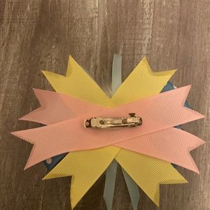 Handmade with hot glue- do not expose to extreme heat. Two bows are on alligator clips. One is on a French barrette. These are not Boutique quality hair bows. However, If you are looking for budget friendly cute character hair bows for your child- these are for you.
