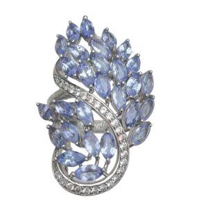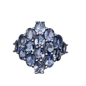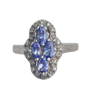 Tanzanite Diamond Ring Sterling Silver - Size 7.5