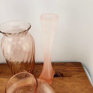 Lot of 3 Unique Vintage Mixed Blush Art Glass Blown Vases mismatched styles