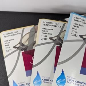 Lot of 3 VTG Hanes Silk Reflections Pantyhose Size XL CD Nude Travel Buff Pearl