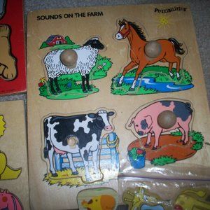 Lot of 3 - Vintage 1985 Small World Toys Connor Red Toddler Wooden Knob Puzzles