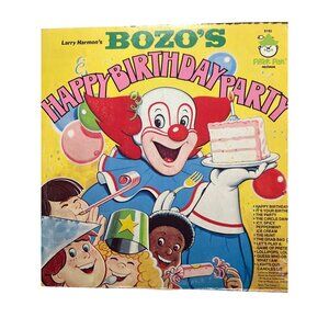 This vintage vinyl record set includes two classic Bozo the Clown albums: "Bozo's Happy Birthday Party" and "Bozo On The Farm." Ideal for collectors and enthusiasts of nostalgic entertainment.