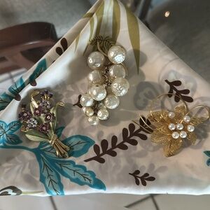 Two of them have faux pearls and the other one is enameled with little rhinestones