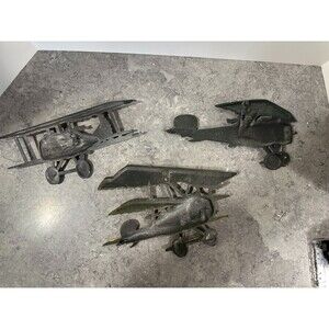 Lot of 3 Vintage Homco Airplane Wall Decor Cast Metal WWI Bi-Planes 1975 USA