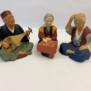 Lot of 3 Vintage Midcentury Collectible Figurines, Asian Man and Woman Figures