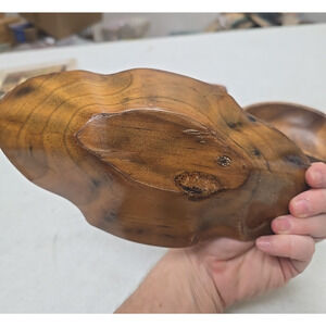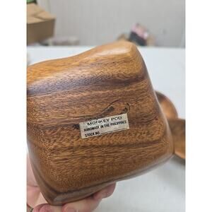 Lot of 3 Vintage Monkey Pod MCM Handmade in Philippines Wooden Serving Dish Bowl. Pre-owned