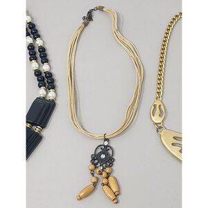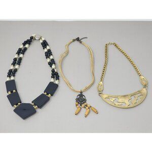 Lot of 3 Vintage Necklaces Gold Necklace/Black Lucite/Beaded Necklaces
