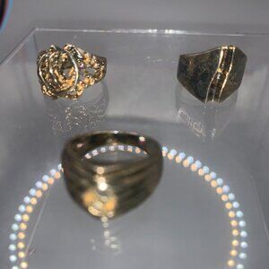 You will receive 3 Men's 14k electro plated rings, unmarked in good condition