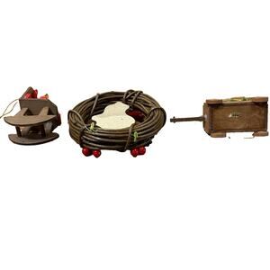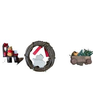 Lot of 3 Vintage Wooden Christmas Hanging Ornaments Holiday Decor Garlan Wreath