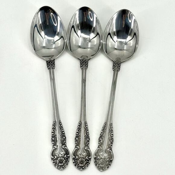 Lot of 3 - Voisin Floral CONTINENTAL Stainless Steel Serving Spoons 8 3/8”L MCM