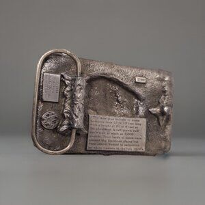 This set includes three original Siskiyou pewter belt buckles from the 1980s, each featuring retro Western designs with bold eagle and bison motifs. Made from solid pewter in a silver-tone finish, these unisex adult buckles are durable, collectible, and perfect for adding vintage cowboy flair to any outfit.