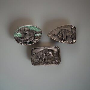 Lot of 3 Vintage 1980s Siskiyou Pewter Belt Buckles – Western Cowboy Eagle & Bison Theme