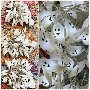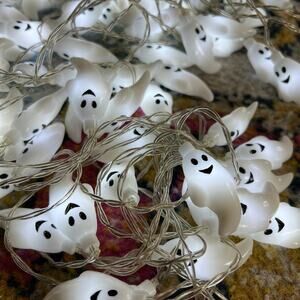 Lot of 3 White Ghost Halloween VERY LONG String Lights (52 total yards)