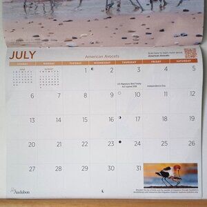1) Protecting Birds and Nature Audubon 16 Month Calendar: This calendar is 10.5” long by 8.25” tall closed. For 2025 this calendar features a different bird photo each month and a large page with the days and holidays for each month. For 2024, the months are condensed onto 1 page.