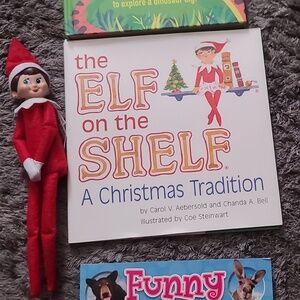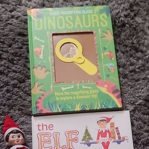 Lot of 3 books Elf on Shelf, Dinosaurs with magnifying glass, funny animals