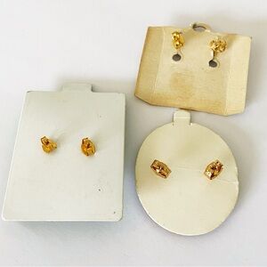 Lot of 3 new old stock vintage stud earring on original cards. All gold tone- faux opal/ dragons breath studs are gold filled. Two pink rhinestone earrings. 1 faux opal. So pretty!! Would look great worn together. Excellent vintage condition.