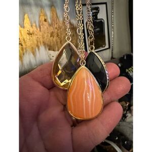 Lot of 3 xl long teardrop /oval statement gemstone necklace/pendants