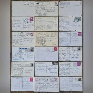 Includes 2 postally unused cards, 30 postmarked cards dated between 1945-1983, 1 postally unused souvenir booklet, and 1 postmarked souvenir booklet dated 1956. Smoke-free home.