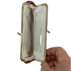 • #3 bag, quilted red with interior mirror, 8" x 3"