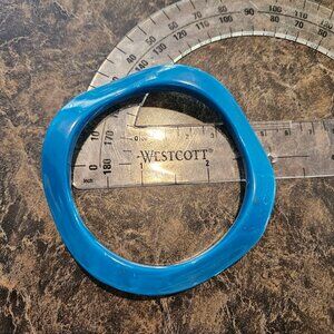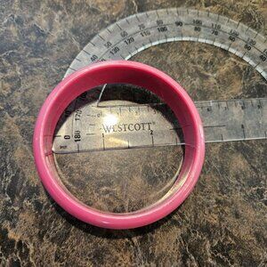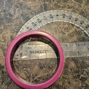 Four great chunky bracelets - bold blue wavy design, thin plum purple, thick bubblegum pink, and plum with diagonal white stripes. Great to add color to any outfit or accessorize an 80s costume! Average diameter size is 2.6 inches, as shown in pictures.