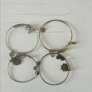 Adjustable wire bangles in used condition with visible wear and signs of age (see photos), but all charms and clasps are intact. A great starter set, gift bundle, or addition to any Alex and Ani fan's stack!