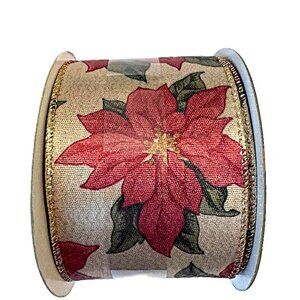 These are 4 new rolls of Christmas holiday patterned wired craft ribbon. There are 2 rolls that are burgundy/green/gold plaid that are each 30 feet in length (60 ft. of this design). Both the ornament and poinsettia ribbons are 25 feet in length. Great use on as bows on wreaths or other holiday projects. Originally cost over $20 new.