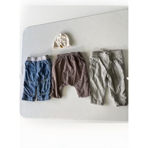 Lot of 4 Baby Boy 3-6M Lined Pull On Pants Hat Baby Gap, H&M, Gerber, Unbranded