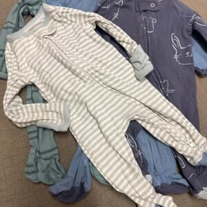 Great condition, worn just a couple of times each. Size newborn. Soft and comfy. These have the double zippers so you can unzip from the bottom up for diaper changes.