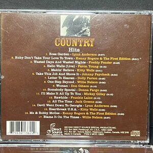 This set features music by Willie Nelson, Kenny Rogers, Waylon Jennings, Lynn Anderson, Freddy Fender, Dolly Parton, George Jones, Patsy Cline, Merle Haggard, and More! Comes complete with the jewel cases and booklets. All of the CDs are in great condition, with the exception of "Country Hits", which is in good condition (it has very light scratches).