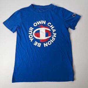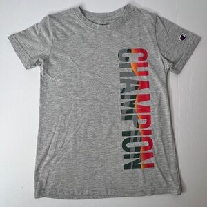 Lot includes 4 Champion T-Shirts, Boy's Size Small (8). T-Shirts all in good condition, one T-Shirt (white with red and black letters) has very faint marks as seen in picture.