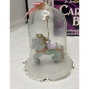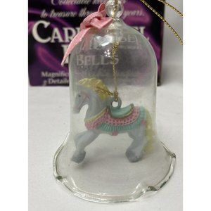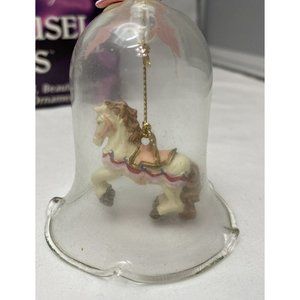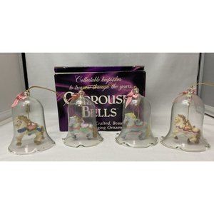 Lot of 4 Carrousel Christmas Ornament Coquette Crystal Bell Porcelain Horses