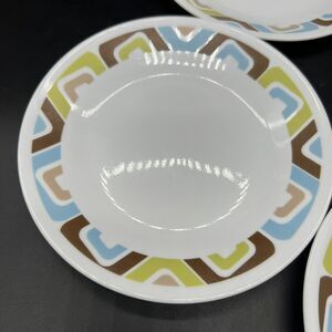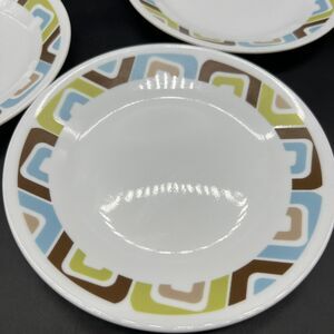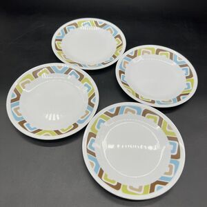 Lot of 4 Corelle Geometric Squared Bread & Butter Dessert Plates Brown Blue Grn