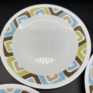 Lot of 4 Corelle Geometric Squared Bread & Butter Dessert Plates Brown Blue Green